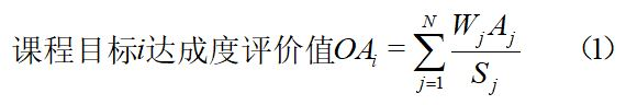 课程目标达成情况定量评价法的数据来源为课程教学大纲中支撑课程目标的各考核环节的考核结果,若课程目标i的达成度由N个考核点支撑,设第j个考核点的总分为Sj,员工平均分为Aj,权值为Wj,那么课程目标i的达成度评价值按式(1)计算: