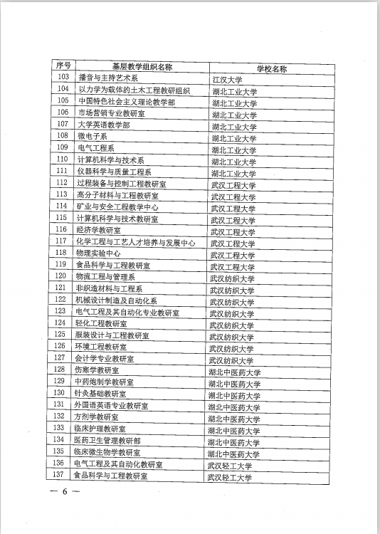 轻化工程教研室荣获“湖北省本科高校优秀基层教学组织”