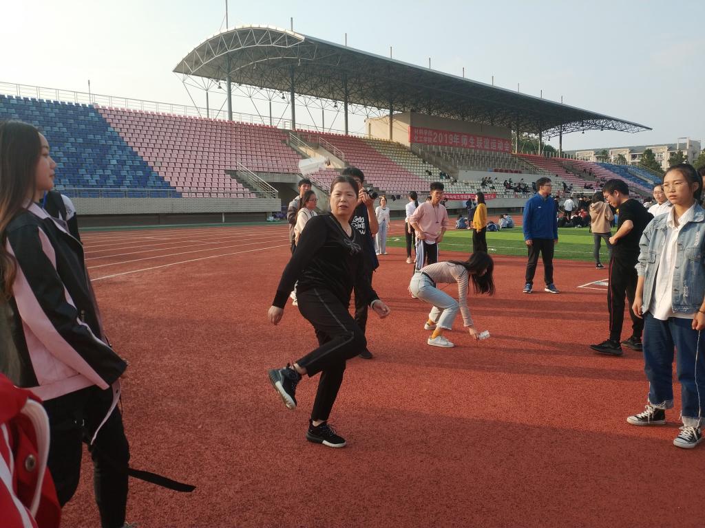 在龟兔赛跑中,同学们劲头十足,老师们也跃跃欲试,师生齐力配合,你追我赶好不热闹;在“三人四足”那里,师生默契十足地完成一次次合作;在50米迎面接力的赛道上,加油呐喊声更是跌宕起伏;在毽球接力中,老师和员工通过小小的毽子进行着你来我往的体育互动。