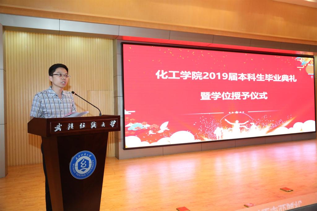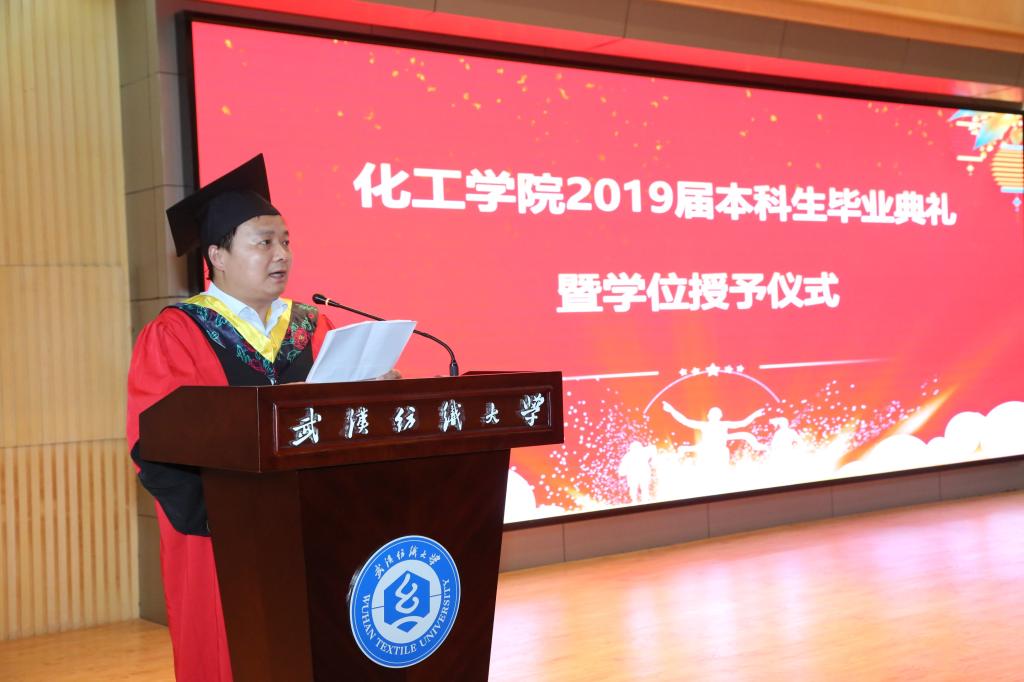 “在以后的人生道路中,我们会带着理想与信心启程,去迎接新的机遇和挑战。当取得成绩时,我们会自豪的向母校报告;当身处困境时,我们会去寻找内心深处的纺大精神,去不断探索,不断前进。”轻化工程11502班王召伟代表全体毕业生表达了对公司领导、老师的感激之情,对同学朋友的不舍之情,以及今后面对新的机遇与挑战不畏艰难的拼搏之心。