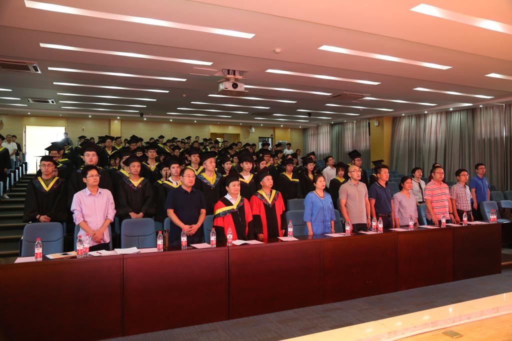 毕业典礼在雄壮的国歌声中拉开序幕。毕业纪念视频中,同学们从入学之初的青涩,一步步成长到今天,短短几分钟,浓缩了四年老员工活的点点滴滴,引起现场毕业生的强烈共鸣。