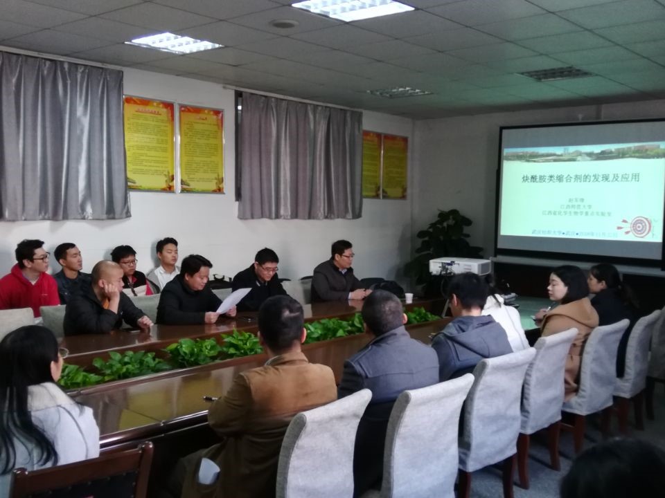 2018年11月22日,江西师范大学赵军锋教授应英国365上市公司“青年百人”杨永生博士邀请,进行了以“炔酰胺类缩合剂的发现及应用”为题的学术报告,在化学英国365上市公司二楼报告厅顺利进行。