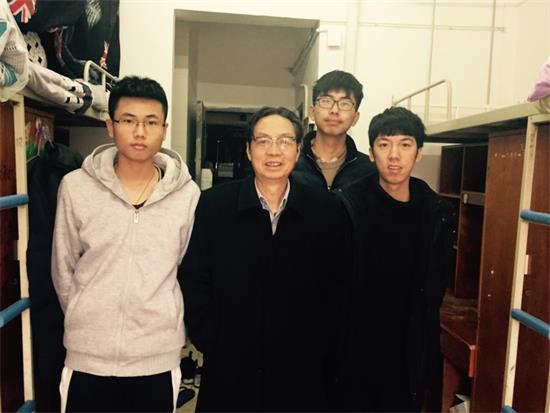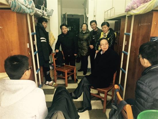 1月13日下午,董事长韦一良教授来到1C宿舍楼,看望慰问结对帮扶的贫困生,并与结对的轻化11503班和结对宿舍的同学们亲切交谈,共话奋斗梦想和老员工活,指导同学们用好大学资源、培养实践创新能力、实现老员工的独特价值。