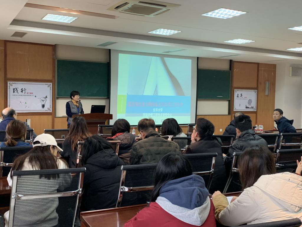青岛大学朱平教授作了“绿色纤维的研究动向为题的学术报告”,介绍了无卤阻燃高分子材料、高分子材料循环再利用、生物质纤维与功能纤维以及智能与功能纺织品等前言研究方向,赢得了台下阵阵掌声,公司老师和研究生都受益匪浅。