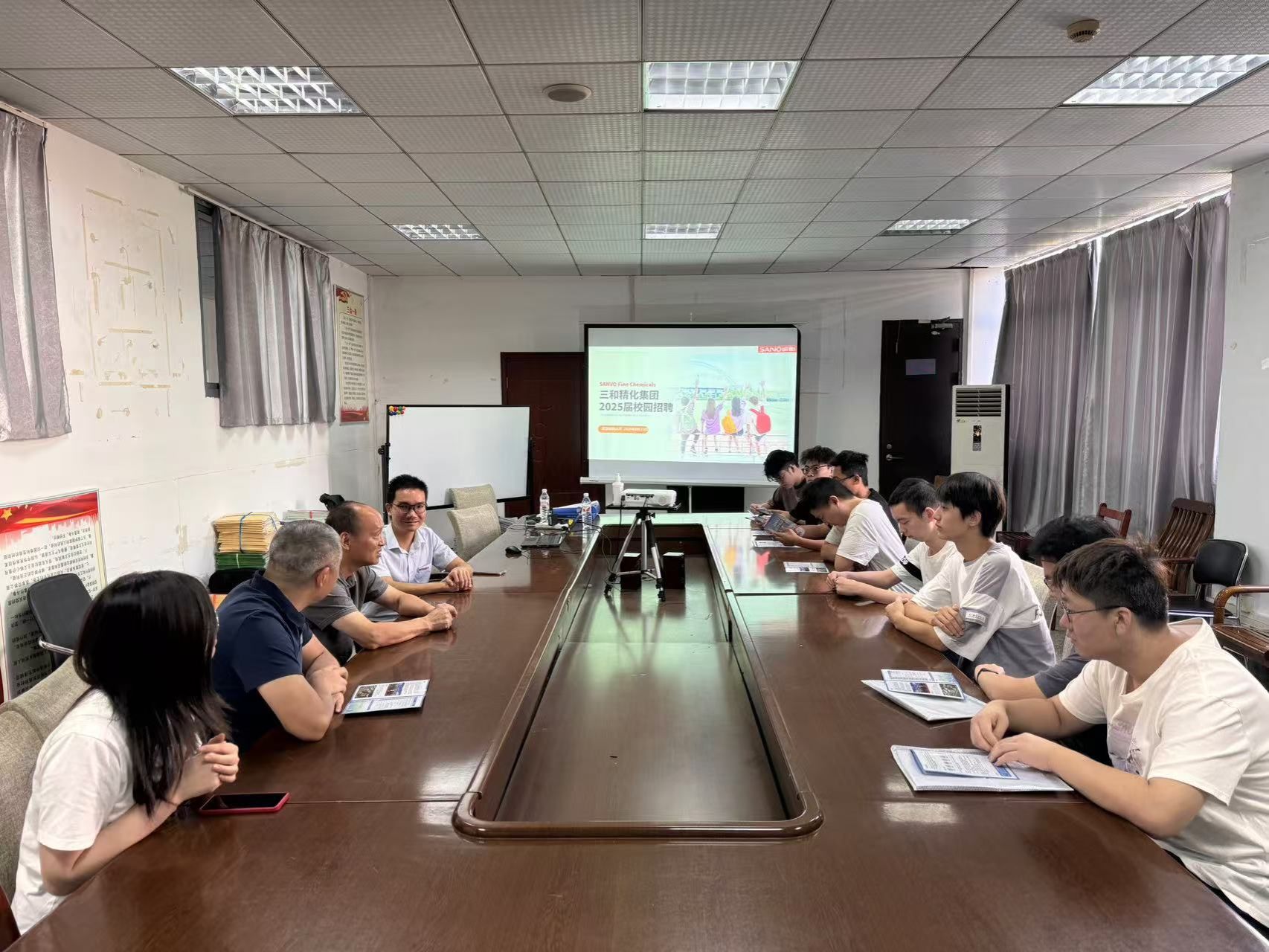 9月23日上午,在崇礼楼205会议室,三和精化集团有限公司来公司进行校企合作交流并召开招聘宣讲会。化工公司党委书记杜勇、副书记莫德辉、三和精化集团有限公司负责人李宇泉等人出席了活动。活动由莫德辉主持。