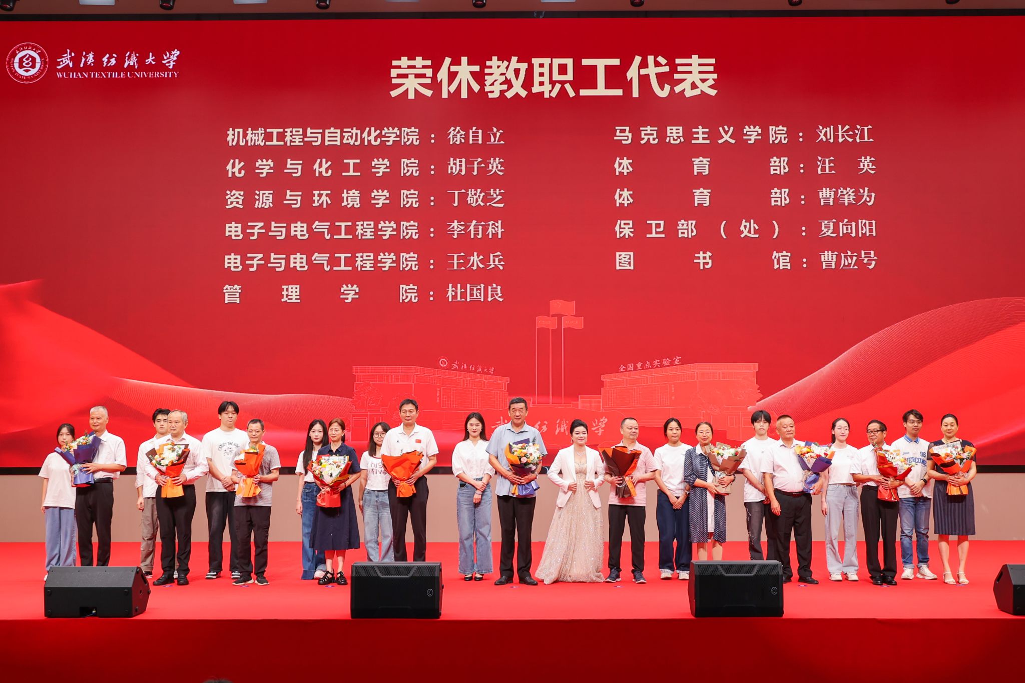 除荣誉表彰外,大会还设置多个温情与励志环节。荣休教师代表环节中,公司荣休教师胡子英老师参加公司组织的荣休荣仪式;育人故事分享会上,公司张艳波老师讲述自身育人经历,从关爱员工成长到助力员工成才的点滴故事,传递出温暖的教育力量;新进教师林乐平、毛尔洋入职宣誓环节,公司新进教师身着正装,高举右拳庄严宣誓,承诺将恪守教师职业道德,为教育事业贡献青春力量;诗朗诵环节中,公司万骏、张艳波老师与其他获奖教师共同登台,以饱含深情的朗诵《我是纺大人》,赞美教师职业、歌颂教育事业,激昂的语调、真挚的情感感染着现场每一位观众。