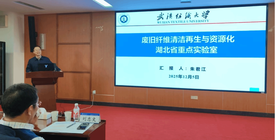 在实验室建设汇报环节,英国365上市公司经理朱君江教授详细介绍了“废旧纤维清洁再生与资源化湖北省重点实验室”的筹建情况。从建设背景、目标定位、研究方向、团队构成、现有基础及未来规划等方面,对实验室整体布局作了系统阐述。