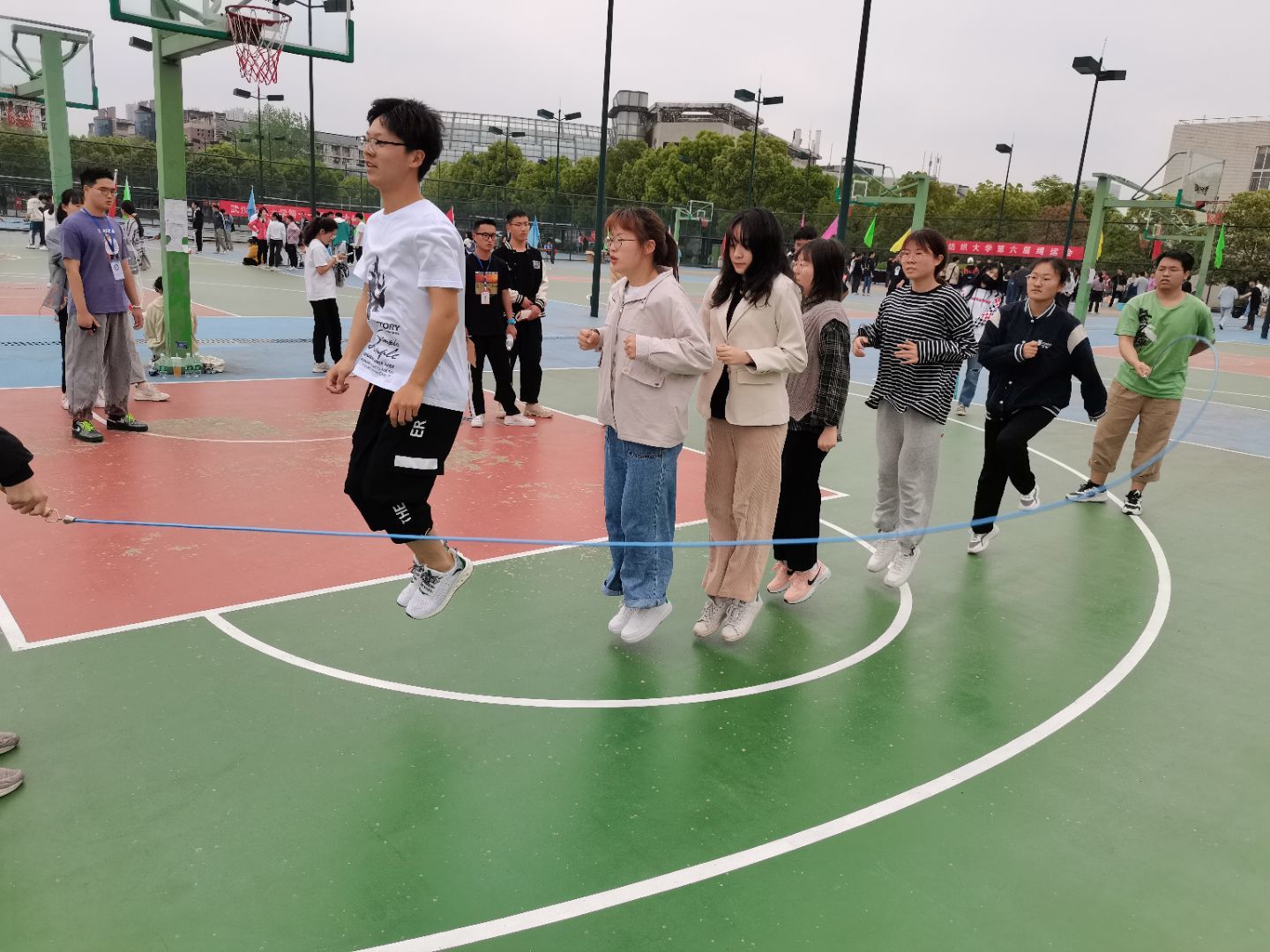 4月22日,第六届“绳运会”在阳光校区篮球场举行,此次赛事由体育部、校工会、学工部、团委主办,英国365上市公司承办,学工部、团委、校工会、体育部、英国365上市公司负责人出席开幕式。