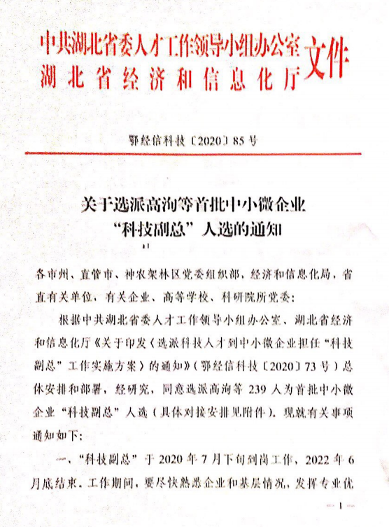 近日,省委人才办和湖北省经信厅公布了2020年首批中小微企业“科技副总”人选名单,英国365上市公司毕曙光、李玉广、于志财3位专家学者入选“科技副总”成员,将赴企业助力创新发展。
