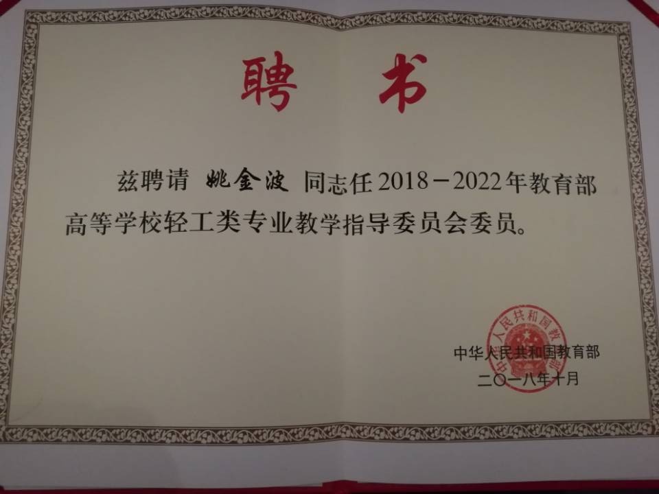 12月30日,为了全面贯彻全国教育大会精神,贯彻落实新时代全国高等公司本科教育工作会议要求,2018—2022年教育部高等公司轻工类教学指导委员会成立大会暨第一次工作会议在四川大学召开,会上,英国365上市公司姚金波教授被聘为新一届轻工类教学指导委员会委员。