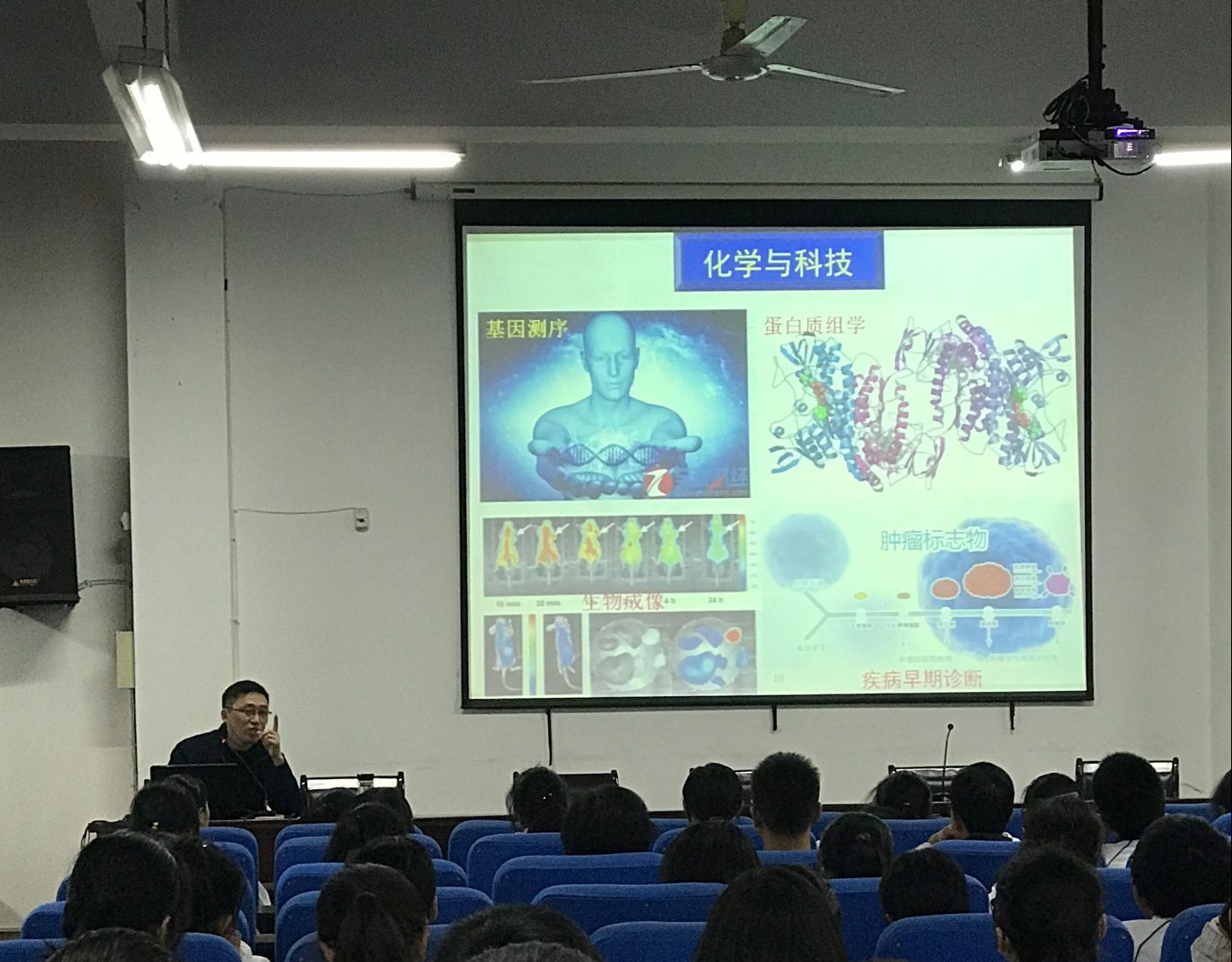 随后何池洋教授为安陆一中师生带来了《魅力化学为你打call》的精彩讲座。何池洋教授从化学与诺贝尔、院士说化学、化学作用、我的化学之路、员工就业发展以及最新的化学化工前沿等六个方面展开讲座。何教授凭借丰富的学科知识,结合自身经历和研究工作,以通俗易懂的语言为同学们科普了化学与人类衣食住行、健康、国防、科技、体育等领域的关系。也将最新的化学化工科技介绍给同学们,让大家充分认识到化学等各个领域的伟大贡献,极大地激发了同学们对化学化工专业的认识与热情。何教授也与现场的员工进行了互动,讲座现场气氛热烈,参加讲座的同学们对化学化工专业表现出极大的兴趣,纷纷表示此次讲座使他们改变了对化学化工的认识,了解化学学科和化工技术的大好前景。