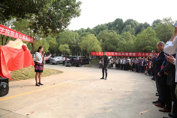 (副董事长姜明华与员工代表李杰雄共同为院名石揭幕)