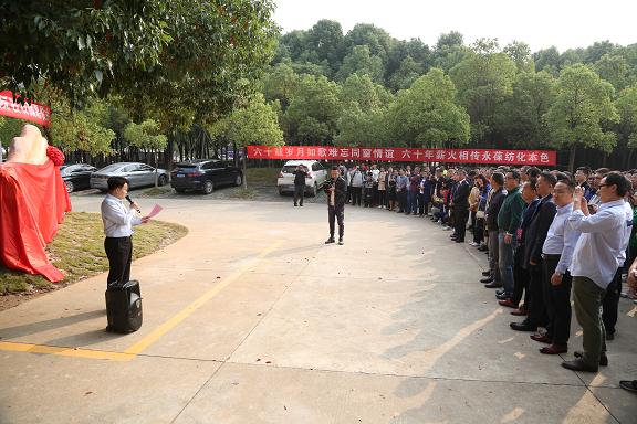接着,染871、872班员工代表李杰雄发表了讲话。他代表广大员工对公司悉心培养莘莘学子的老师们致以崇高的敬意和衷心的感谢。他表示员工们不忘初心赴母校会集,为的是饮水思源、寻根筑梦,共同回忆那激情燃烧的岁月并共庆母校六十华诞。他赋诗一首,表达对母校的深厚感情: