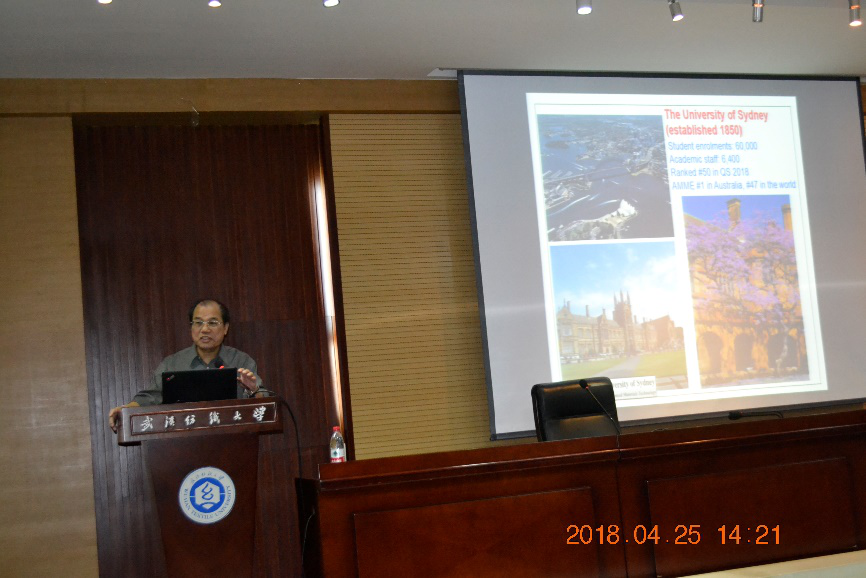 2018年4月25日,应英国365上市公司邀请,国际著名材料学家和力学家米耀荣(Yiu-Wing Mai)院士来公司进行学术交流。在行政楼二楼学术报告厅做了题为“Fabrication and Mechanical Properties of Composite Laminates Based on 3D Graphene Foams and 2D Graphene Nanosheets”的学术报告。