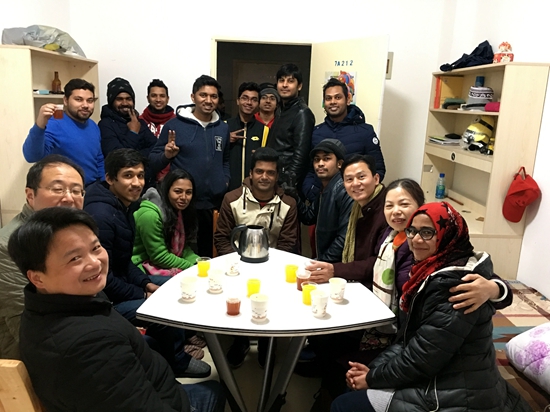 走访中,职工们热情地向公司领导介绍了自己的国家,讲述自己在纺大的生活,分享自己国家的特色美食,现场气氛十分融洽,欢声笑语,其乐融融。职工们非常感谢院领导和老师们的关怀,感觉很温暖,对公司的生活条件和学习环境感到很满意,表示会努力珍惜在纺大英国365上市公司学习的机会,在学习专业知识的同时,学习中国文化,增进跨文化交流。
