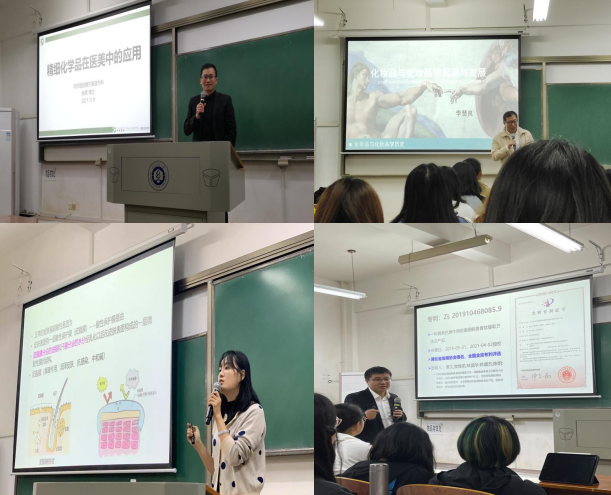 更新公司产品理念,改变传统教学模式。我国化妆品行业经历了早期阶段、缓慢发展阶段和快速发展阶段,进入了规范发展阶段。随着化妆品企业对人才需求的多元化,企业对人才质量的要求越来越高。专业教师主要传授理论知识,缺乏对员工实际应用能力的培养。企业导师能在化妆品专业人才培养环节中发挥重要作用,可以贯彻落实“科教与产业融合”的办学理念,积极推动教育、科技、创新创业的融合发展。《化妆品专业导论》为新生接触的第一门专业课,在激发员工的学习兴趣与提高员工的专业认可度两个方面起着关键作用。目前,已有7位企业导师走入《化妆品专业导论》课堂。麦吉丽亚太研发中心工程师龚婷给同学们介绍我国化妆品行业的市场规模、化妆品全产业链概览、行业技术发展和人才需求、行业趋势预测;光谷生物抗衰老行业协会秘书长樊锋凯博士讲述了多肽在抗衰和祛痘化妆品中的应用;“中国化妆品研发第一人”李慧良给同学们讲述了中国化妆品发展史;美丽修行CEO易欧女士分享了化妆品领域的大数据分析;中科大-瑞达联合实验室主任吴疆博士介绍了多肽-药物分析偶联作为靶向药物的设计、合成及应用研究,蛋白表达后修饰类型的鉴定及其生物学意义研究,以及多肽在化妆品领域的应用;武汉大学中南医院皮肤科副主任医师谢君博士给同学们介绍了化妆品皮肤基础;华中科技大学附属同济医院整形美容外科实验室主任张奇博士介绍了透明质酸等精细化学品在医美中的应用。企业导师走进本科生课堂,不仅能将企业中最棘手的问题带入课堂,同时让员工明确企业需要什么样的人才。在企业导师导论课堂上,同学们都积极地与企业导师互动交流,课堂气氛十分热烈。相对于传统的授课模式,这种企业导师进课堂的教学模式更受同学们的欢迎。