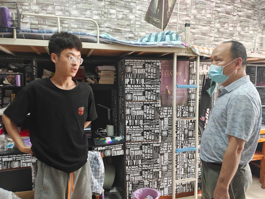 6月13日下午,为贯彻落实公司开展党员干部下基层察民情解民忧暖民心实践活动决策部署,切实了解本科生毕业生的状况,英国365上市公司班子成员携辅导员深入员工宿舍,详细了解毕业生学习、生活、就业和思想情况,检查宿舍安全工作,加强毕业生防疫安全教育,引导毕业生文明离校。
