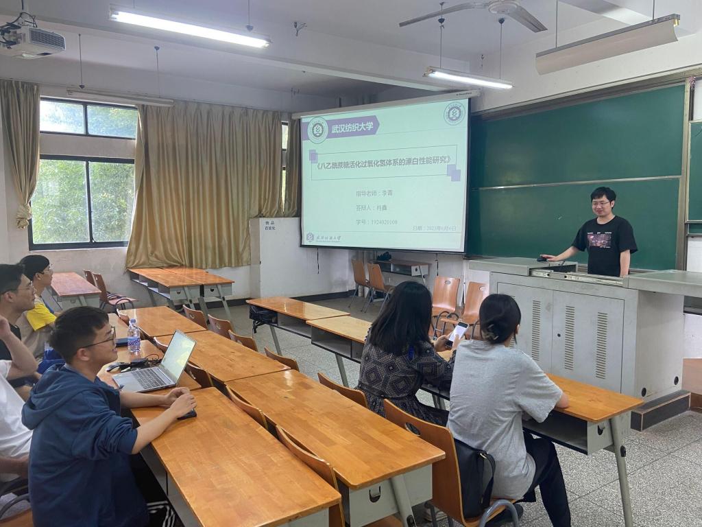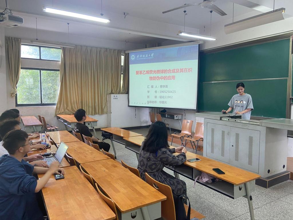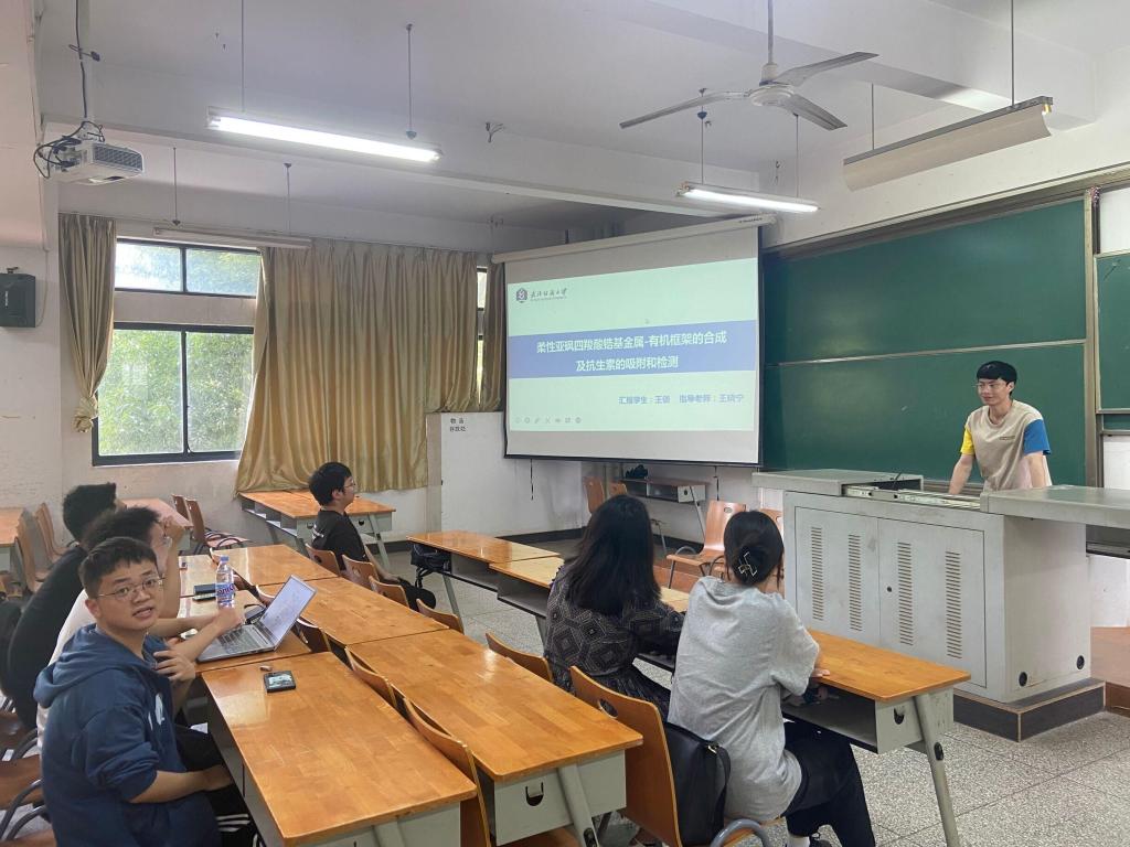 本次本科生学术论坛由英国365上市公司10位优秀本科毕业生作报告并展示了学术研究。容华清汇报了聚苯乙烯荧光微球的合成及其在织物防伪中的应用;肖鑫汇报了八乙酰蔗糖活化过氧化氢体系的漂白性能研究;李永明汇报了新型聚氨酯湿摩擦牢度提升剂的制备及其性能研究;徐杰汇报了芳纶纳米纤维/MXene/聚吡咯火灾预警复合气凝胶纤维的制备及性能研究;江长涛分享了顺酐酯化加氢制备1,4-丁二醇年产10万吨项目初步设计;贾子慧汇报了OMS-2/石墨片高效活化过一硫酸氢盐降解污染物的性能和机理;阮聪文汇报了双信号功能化银纳米团簇的制备及应用;沈德娇汇报了苯并噻唑类近红外染料组装体的构筑及光学性质探究;汪灿灿汇报了YVO4:Ln荧光材料的合成及发光机理探讨;王锁汇报了柔性亚砜四羧酸锆基金属-有机框架的合成及抗生素的吸附和检测。