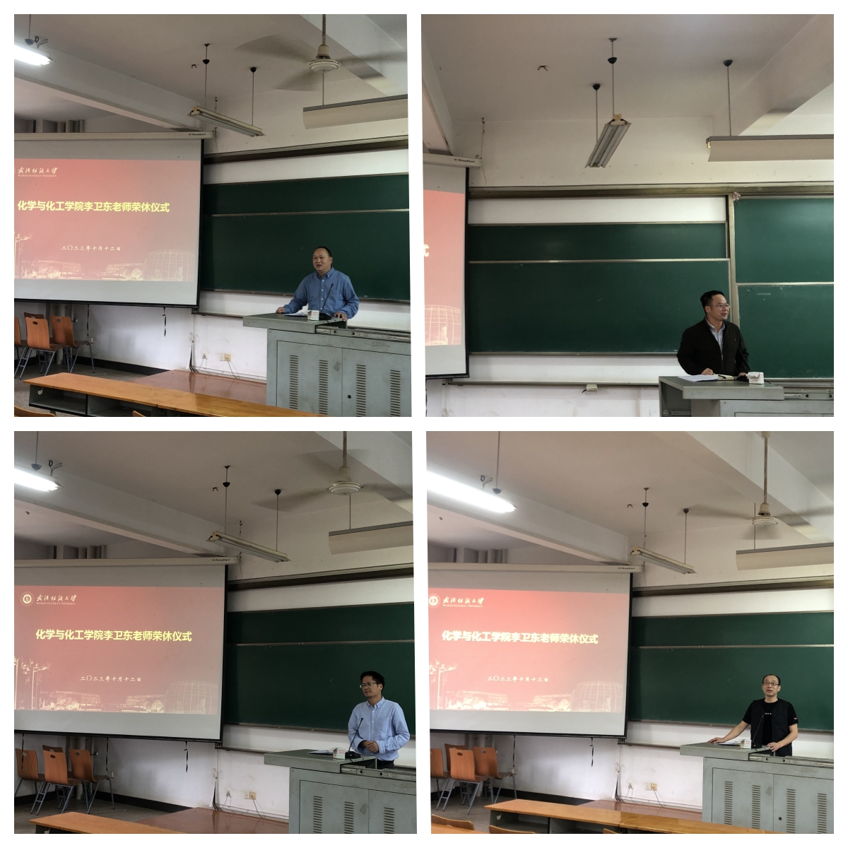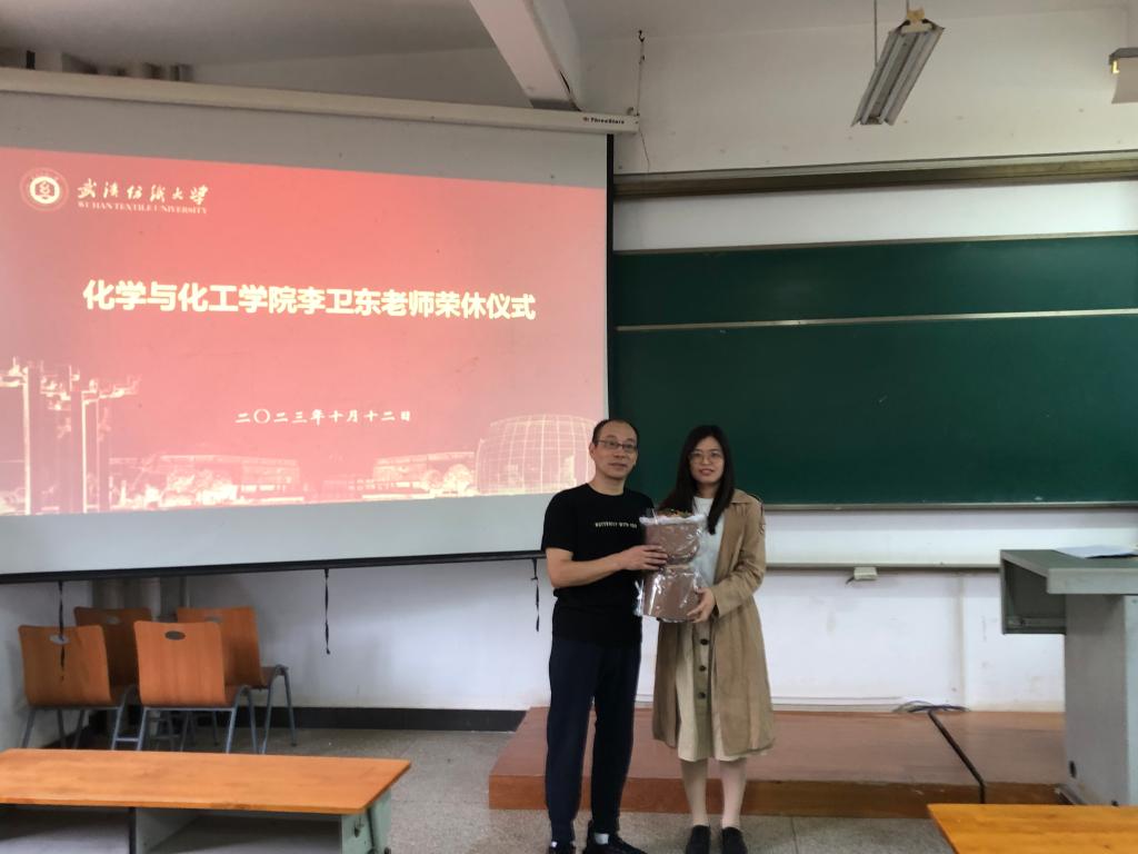 彭俊军作为大化系主任,对李卫东的退休感到十分不舍。彭俊军说到,李卫东是他在纺大成长的引路人,是共事的好前辈,在这个共同奋斗的地方,有着无数个令人难忘的回忆,从李卫东的身上看到一位热心肠、乐助人的老教师身影。