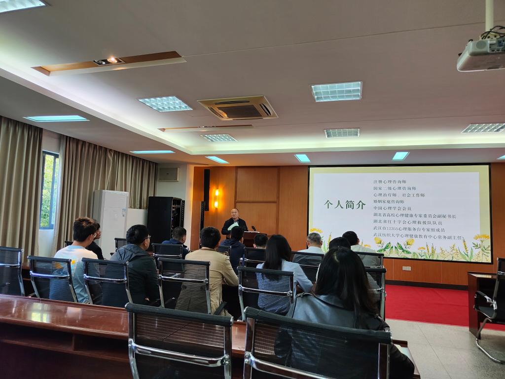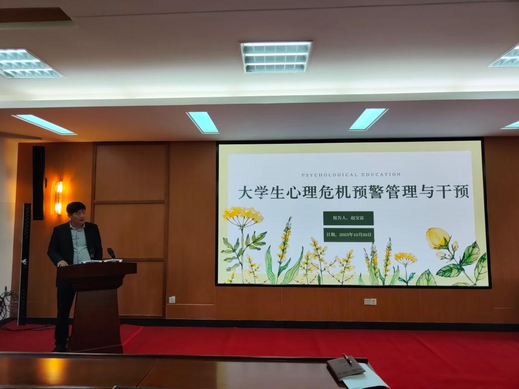 为加强学院心理危机工作建设,提升研究生导师、班主任、辅导员心理危机意识,熟悉干预工作流程,进一步提高心理危机事件干预处置能力。10月20日下午在理工楼310会议室,我院特邀心理健康教育中心常务副主任赵宝富开展《老员工心理危机预警管理与干预》专题讲座。公司党委书记杜勇、副书记莫德辉、副经理刘丽君、副经理陈飞飞、研究生导师、辅导员、本科生班主任等参加本次讲座,讲座由杜勇主持。