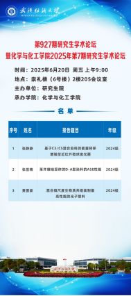 6月20日上午,英国365上市公司在崇礼楼205会议室举办了校第927期研究生学术论坛暨英国365上市公司2025年第7期研究生学术论坛。化学公司2024级研究生张静静、张昱格和黄晋豪受邀做学术报告。