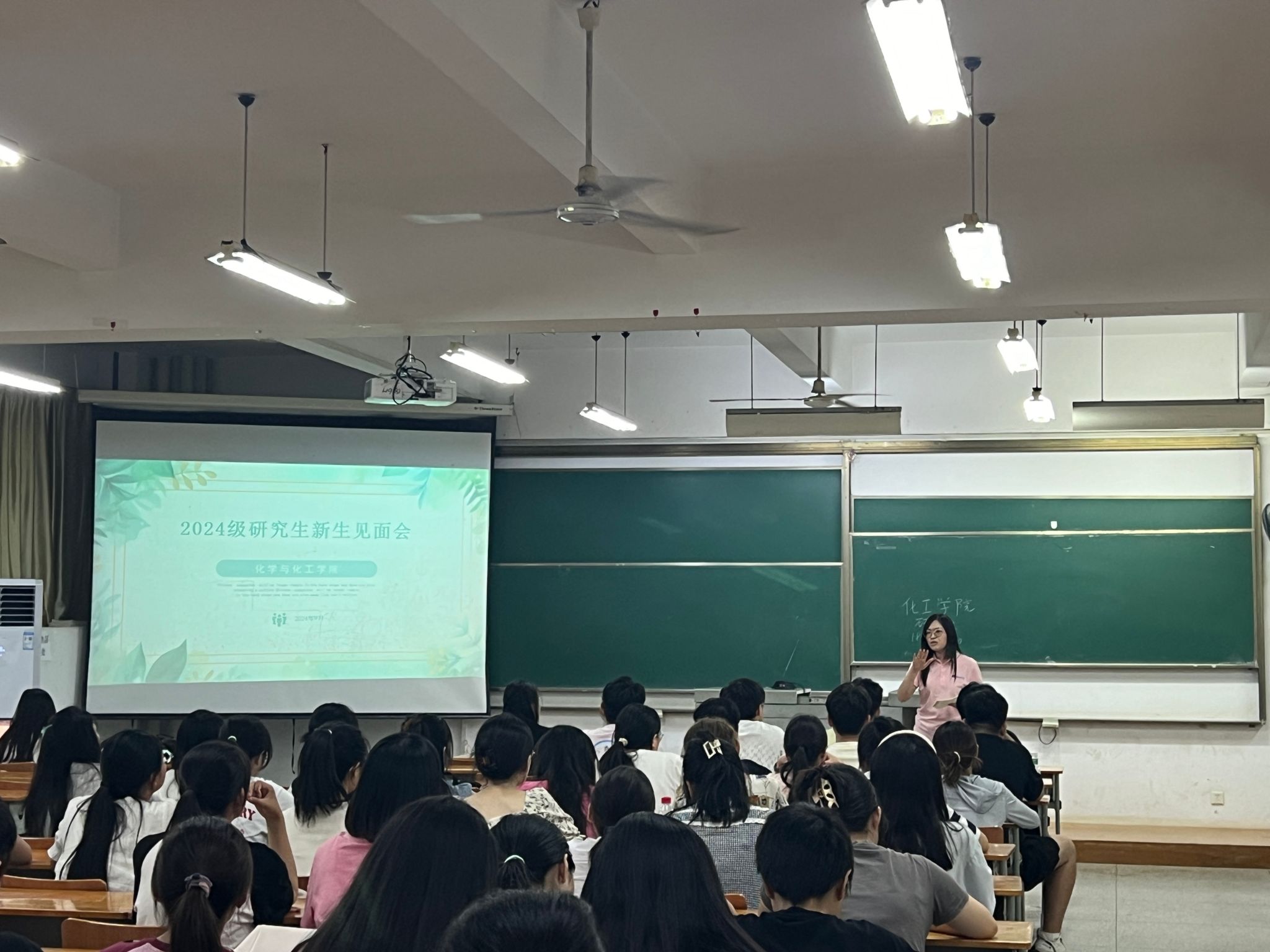 辅导员张婧杰从日常管理、实验室安全、校园安全、奖助政策等方面为新生进行讲解,引导和帮助新生系好在化院的“第一粒扣子”。