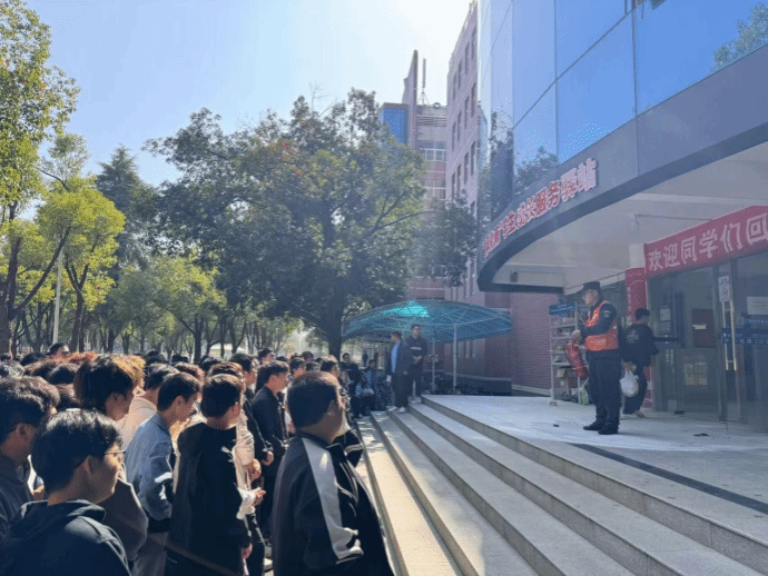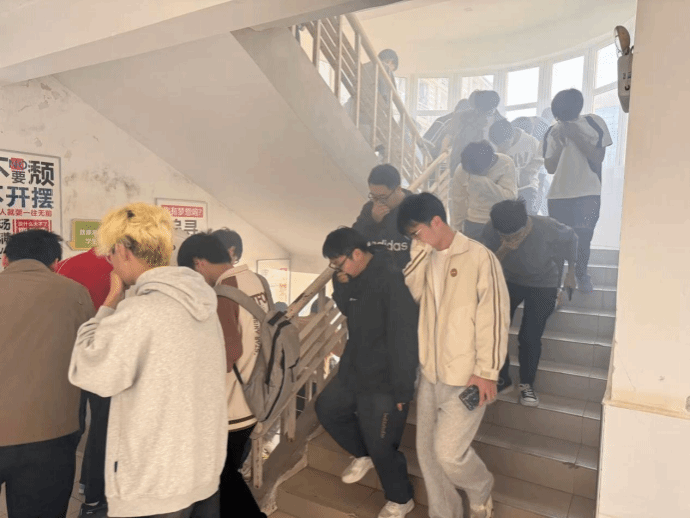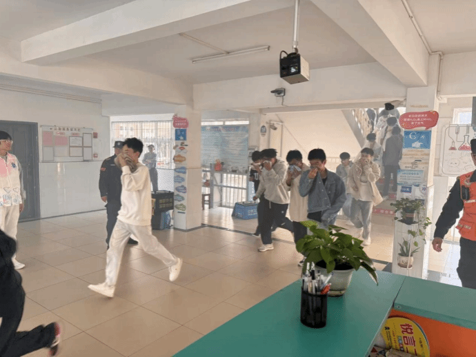 随着10位安全员的全部到位,火灾警报响起,演练正式开始。一栋员工公寓内的师生听到警报后,快速反应,立即停止手头事情或学习,在安全员的引导下,迅速有序地沿着逃生路线撤离至安全集合点。整个过程紧张而有序,师生们在确保安全的前提下高效疏散,几分钟便全部到达安全区域。安全员清点了人数,确保所有人员已全部撤离。