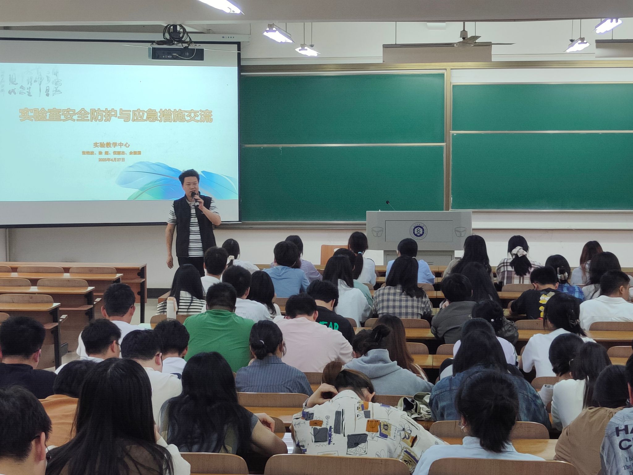 实验室主任张艳波则针对实验室安全进行了重点讲解。他强调,实验室是科研的重要场所,但同时也存在诸多安全隐患。研究生在进入实验室前,必须熟悉实验室的安全规章制度,严格按照操作规程进行实验。对于危险化学品的使用与存储,要格外小心,确保专人管理、专柜存放,并做好详细记录。在使用实验设备时,要提前检查设备是否正常运行,操作过程中集中注意力,避免因疏忽引发安全事故。他还演示了灭火器、紧急喷淋装置等安全设备的正确使用方法,以及其他安全急救措施,让同学们有了更直观的认识。