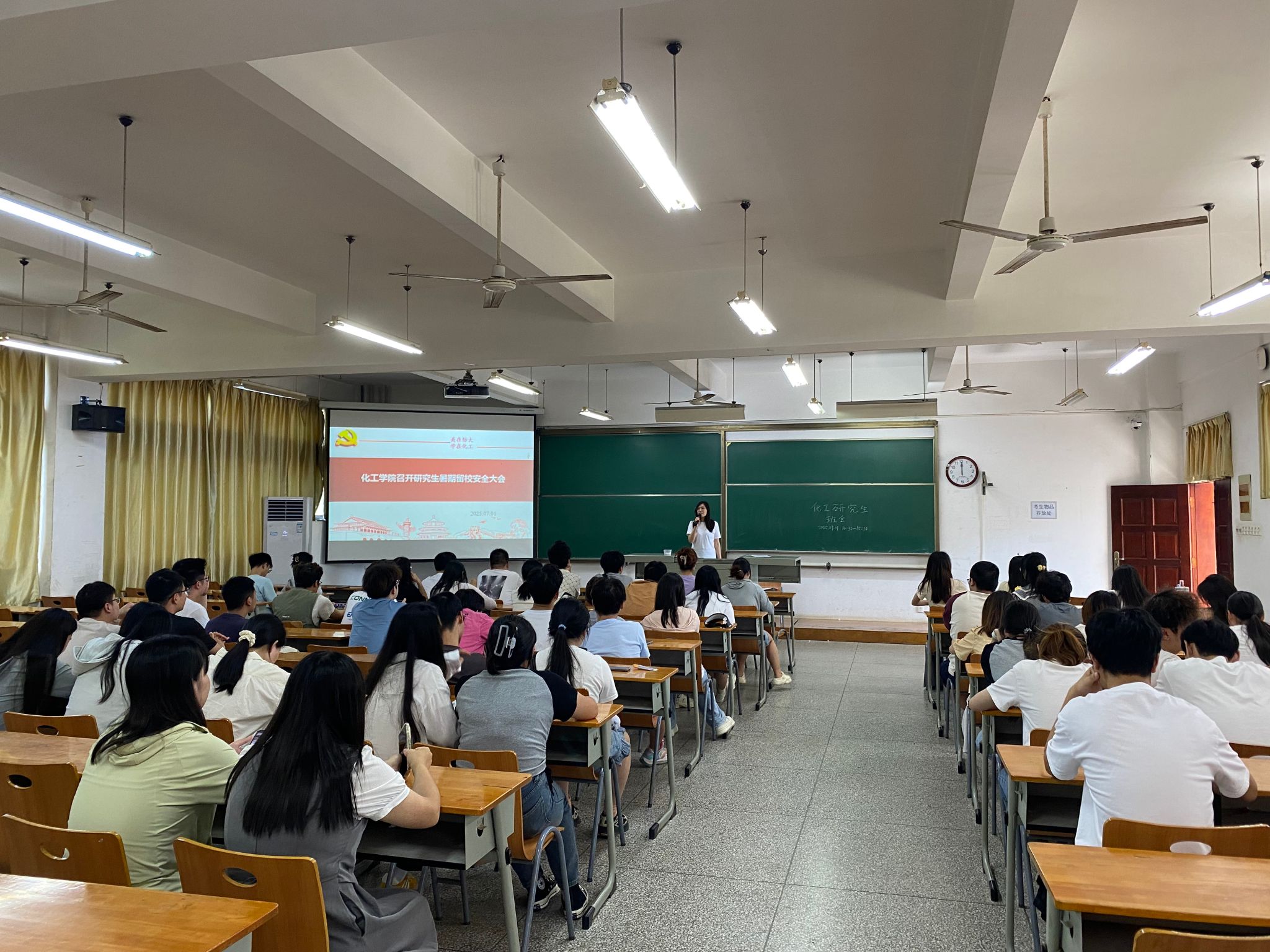 为切实做好公司暑期留校研究生的教育管理工作,进一步增强研究生的安全防范意识和自我管理能力,7月1日下午,化学与化工公司在6-221教室召开2025年暑期留校研究生安全教育大会。