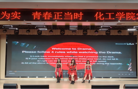 首先是由朱思曈等高年级同学,以动感舞姿点燃全场,为即将开始的晚会激情开场。紧接着,贺亦宸的《退后》、曹海鑫的《bleeding love》、王浩与王璐瑶的《美丽的神话》等歌曲轮番上演。