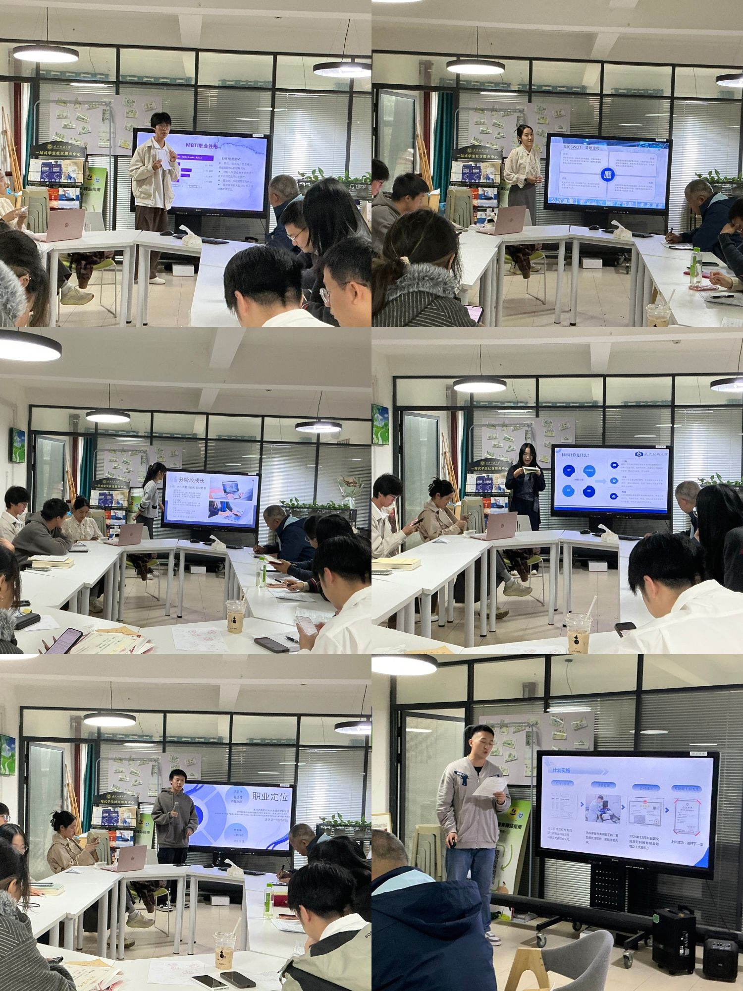 比赛环节紧凑有序,分为材料评审、PPT 展示、现场答辩三个阶段。在 PPT 展示环节,选手们结合专业特色与个人优势,从自我认知、职业环境分析、目标设定、路径规划等方面展开阐述。各位同学有的聚焦绿色化工研发领域,将科研经历与行业趋势深度结合,规划了从企业研发岗到技术管理的职业路径;有的围绕化妆品配方研发方向,明确了短期夯实专业技能、中期考取行业认证、长期打造核心竞争力的发展蓝图,展现了清晰的职业规划思路。答辩环节中,评委们针对职业目标可行性、路径适配性等关键问题进行提问,现场互动氛围热烈。