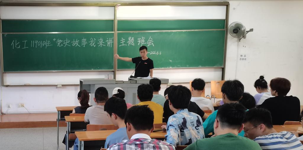 19级兼职辅导员王超龙老师主持活动并讲到“我们要不忘革命先烈的感人事迹,增强学习活动的仪式感、参与感。”随后由化工11901班马璇同学给大家讲了五四运动的故事,五四运动是一场毫不妥协的反帝反封建的爱国运动,它打开了中国新民主主义的大门、直接影响了中国共产党的诞生和发展。