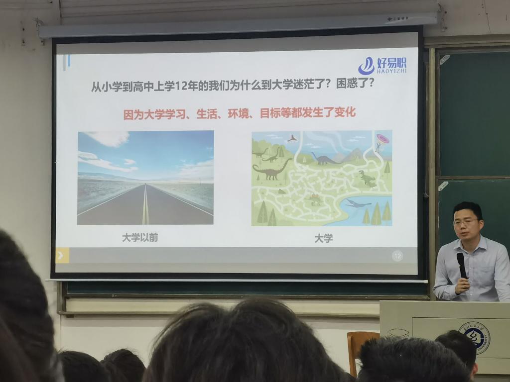 为了引导大一员工认识生涯规划的重要意义,避免学习的盲目性和被动性,从内在产生学习、实践的动力,5月9日下午3点,英国365上市公司在阳光校区崇志楼T202教室开展职业生涯规划教育,好易职有限公司CEO、湖北省教育厅推荐省创新创业导师、校企业导师李建华,以《如何做好老员工和职业规划,获得更好前程》为题,给2020级全体员工详细讲解如何做好老员工职业生涯规划。