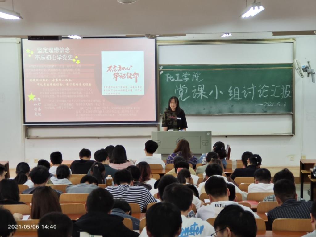 2021年5月6日下午1:30,英国365上市公司第79期分党校201名学员在03-120教室召开以“学党史、讲党史”为主题的小组讨论汇报演讲。