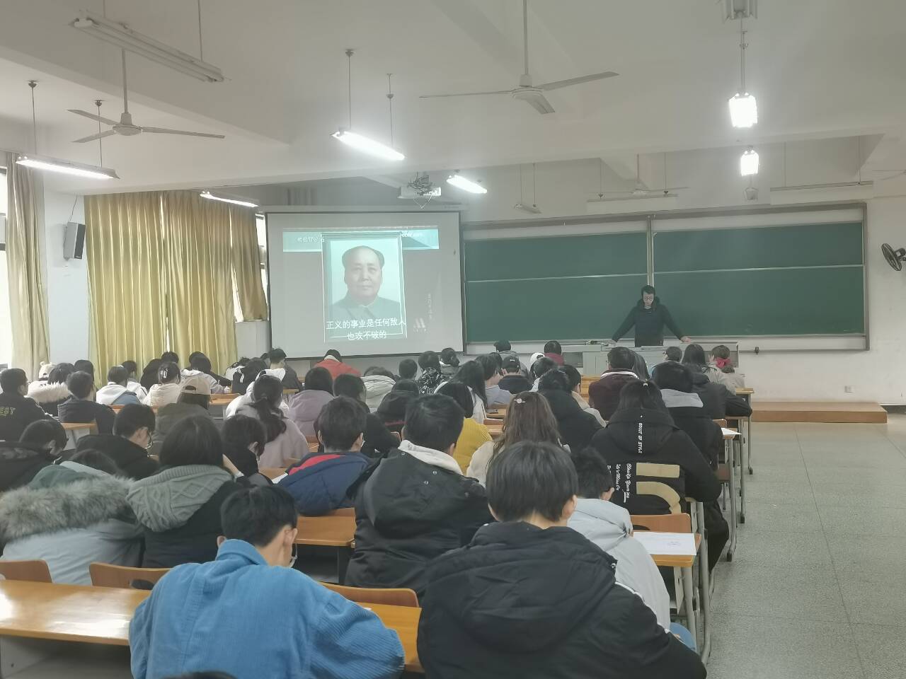 活动伊始,谈鹏老师结合视频,与同学们一同回顾了毛主席的生平。毛泽东,字润之,笔名子任。湖南湘潭人。他是中国共产党创始人之一,也是中国人民解放军和中华人民共和国的主要缔造者和领导人。1949至1976年,毛泽东担任中华人民共和国最高领导人,是中国第一任主席。他对马克思列宁主义的发展、军事理论的贡献以及对共产党的理论贡献被称为毛泽东思想。