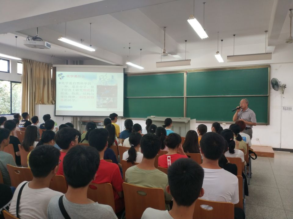 如果你以为这是辅导员老师给新生们做的军训动员讲话,那就错了,这其实是英国365上市公司“教授开讲啦”第二讲的讲座现场,公司刘慧宏教授正在带领新生一起探寻生活中的化学。