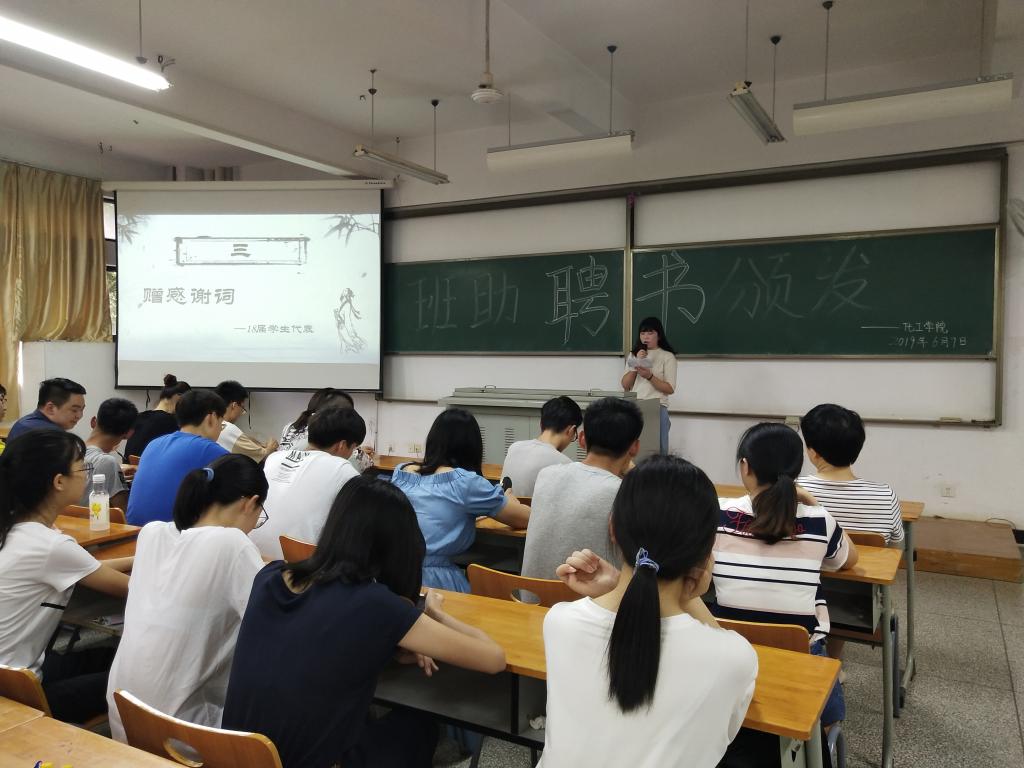 “筚路蓝缕,纺织开辟丝绸之路;敢为人先,知行合一创造文明”仪式以一曲纺大校歌开场。从暑期的电话联系,到校园初识;从生活中的热心关切,到学习上的督促教诲。主持人与全体2018级员工一道回顾了班助的辛勤工作始末,并代表全体同学对各位班助的辛劳付出表示由衷的感谢。