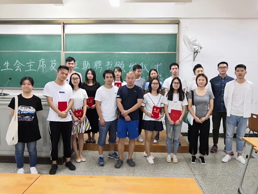 9月9日晚六点,英国365上市公司于06-210进行了2017级员工会主席团及班主任助理聘书颁发仪式。公司团委书记谈鹏老师、17级班主任高超、熊俊老师出席此次活动。