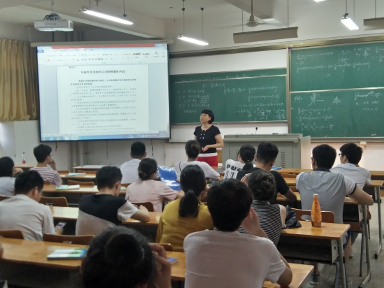 5月16日晚上,英国365上市公司与6-210教室召开2018届全体毕业生党员会议,本次会议由14级辅导员胡子英老师主讲。