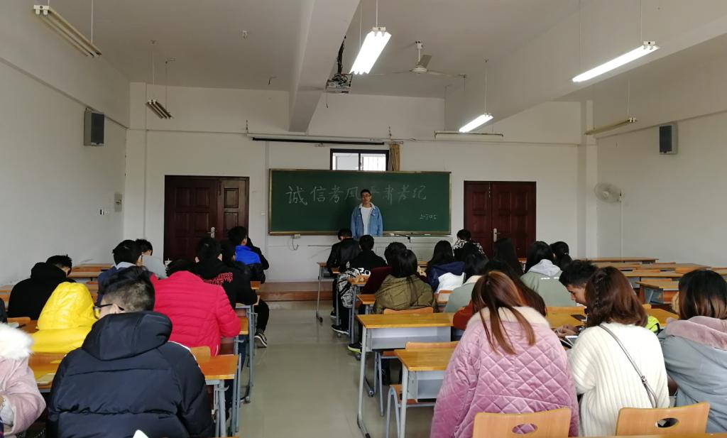 班会各年级各班班长主持,班长们总结了一个学期班级建设方面的成果和不足,希望大家能够提出更多好的意见和建议。同时针对即将到来的期末考试,同学们应该端正态度,认真复习,用成绩来验证自己的学习成果。17级班长杨叶伟鹏表示:“诚信问题是时下社会热点议题,作为员工应该严守诚信底线,从自身做起,践行社会主义核心价值观。”15级班长曹金爽说道:“诚信考试是对考试、考生和老师的尊重,是道德规范和人品的体现。大家应当自觉维护考场纪律,为自己打造优良的考试环境。”