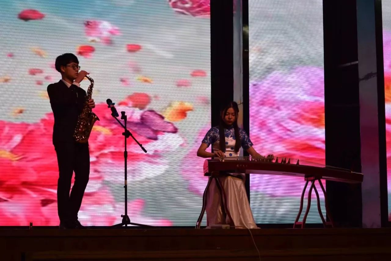 晚会中同学们以自己的方式书写青春,用自己的语言描绘大学精彩。中西合璧的萨克斯古筝合奏《偏偏喜欢你》,让人沉醉其中。双节棍小分队刚柔并济的表演将晚会气氛带向了高潮。