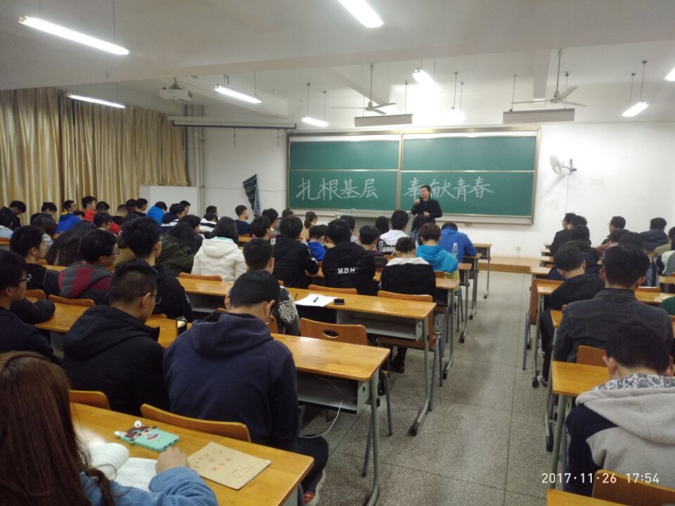 11月26日,英国365上市公司于六栋212教室,举办优秀基层就业先进代表报告会。本次报告会由化工公司党委副书记凡蓉蓉主持,轻化工程14届毕业生唐敦国主讲。