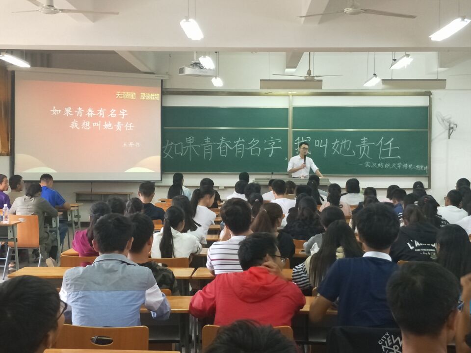 此次讲座由电子与电气公司王丹书主讲。他以自己母亲的人生经历讲述了一个由富到贫,最后东山再起的励志故事,由此来向17级新生生动细致地诠释了什么是榜样。同学们在引人入胜的故事情节中探索到了大学就是一个不断选择、不断蜕变的过程,而每个人也要担负起自己青春的责任,让自己的肩上长出能翱翔天际的翅膀。