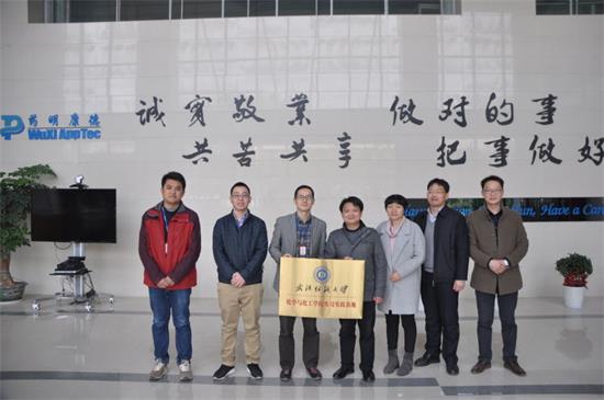 3月10日,英国365上市公司经理李伟、党委副书记凡蓉蓉、应用化学系主任刘仰硕、大化中心青年博士薛志勇一行赴武汉药明康德新药开发有限公司进行实践教学基地挂牌。