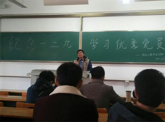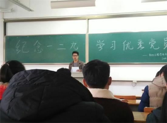 在学习“从严治党之重”的同时,轻化支部弘扬“一二九”员工运动精神,号召同学做一个有责任、有担当、有理想的青年,时刻怀有爱国之心,坚定党的信念,刻苦努力。并学习了一名优秀党员应具备的素质,向身边优秀党员学习。