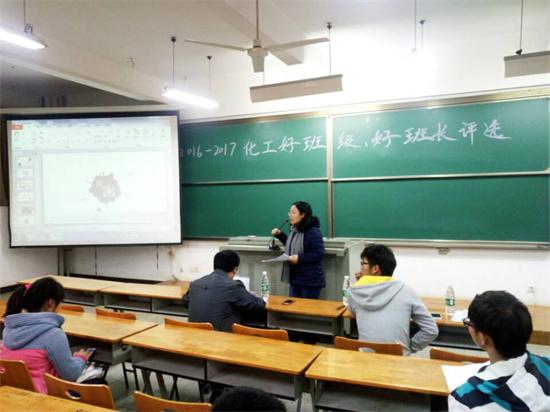 为促进英国365上市公司的学风建设,提高同学们的团体意识,在院领导的大力支持下,12月4日下午17:00,英国365上市公司在6栋教学楼212室举办了“化工好班级好班长”评选大会,进一步践行“美在纺大,学在化工”的院训。14级、15级各班级与班长参与评比,英国365上市公司分党委副书记凡蓉蓉,轻化11401、11402班班主任陈海,15级辅导员王娟娟,教师颜超出席此次评选大会。