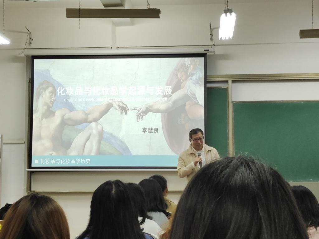 李慧良主导研发了国民花露水六神,被称作“六神之父”,他是推出本土第一支护手霜的美加净品牌和中草药护肤品牌佰草集的研发灵魂人物,“高夫”和“启初”均出自他手,他是“中国化妆品研发第一人”。李慧良表示大部分化妆品企业都在试对,没有试错。“中草药提取物加入化妆品中,中草药含量越高,其稳定性权重也就越高,厂家在碰到产品不稳定时很少愿意承担风险突破难题,而是选择‘减量’的方式,比如将中草药含量从0.5%减到0.1%,如果0.1%不稳定就再减,最后导致中草药的含量也就越来越少。”基于以上原因,他在第一场报告的最后对同学们提出期许,希望同学们能将中草药更多的应用于化妆品行业,将中草药发扬光大,并在最后表示“只要中国化妆品还需要我,我就会一直坚持,甚至可以无偿付出。”其伟大精神令同学们肃然起敬。