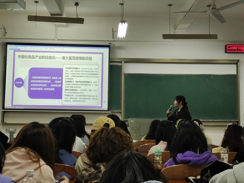 两位老师不仅在课堂上向同学们讲述了自己在化妆品道路上的心路历程,还激励同学们在未来的日子里继续在化妆品专业里乘风破浪,将中国化妆品行业推向世界。
