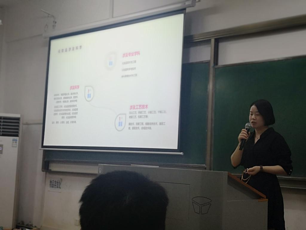 龚婷首先介绍了我国化妆品行业的市场规模、化妆品全产业链概览、行业技术发展和人才需求及行业趋势预测,让员工们对化妆品行业的现状、未来发展趋势有了详细的了解。然后,讲解了不同岗位的职能分布及人员应聘所需要的相关条件,并为员工介绍需要着重学习和掌握的技能,并建议同学们在大学期间打好专业基础,多锻炼自己各方面的能力来提升竞争力,不断积累经验,以体现自身价值。