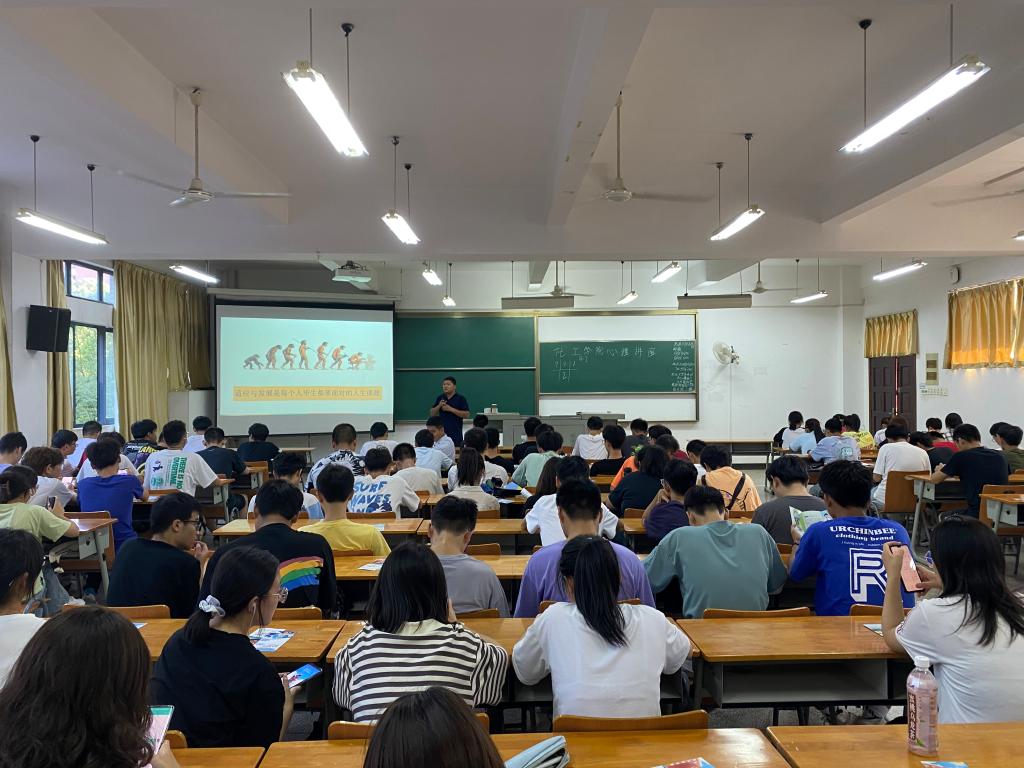 讲座伊始,张万里抛出了第一个问题“什么是适应”引发在座同学的思考,罗列出新生在入学后的过渡期内,会在学习、友情、时间管理、思乡情绪、爱情以及社团参与等方面遇到的困扰及具体表现,并通过举例说明当面对这些困扰时,什么样的反应叫消极适应、什么举动叫做积极适应;其次,他提出了第二问题“什么是发展”,他从心理学的角度,深入浅出地在解释其含义,并详细介绍老员工身心发展的过程,然后讲述了心理社会性发展理论与生命全程发展观,使同学们对心理学有了一个初步的理论认知;随后,他对新生的学习适应、生活适应、人际交往心理适应、科学睡眠、健康生活等给出了积极的建议。同时,对心理异常特别是抑郁发作的一些表现进行了描述,建议通过努力资助、积极互助、必要时主动求助等方式帮助自我建立健康的心理状态。